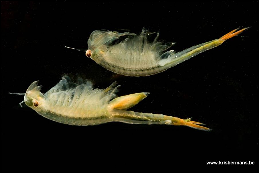 These temporary freshwater crustaceans live in temporary pponds with few or no predators. One very interesting feature is that these fairy-shrimp swim freely with the belly upwards throughout the water column.