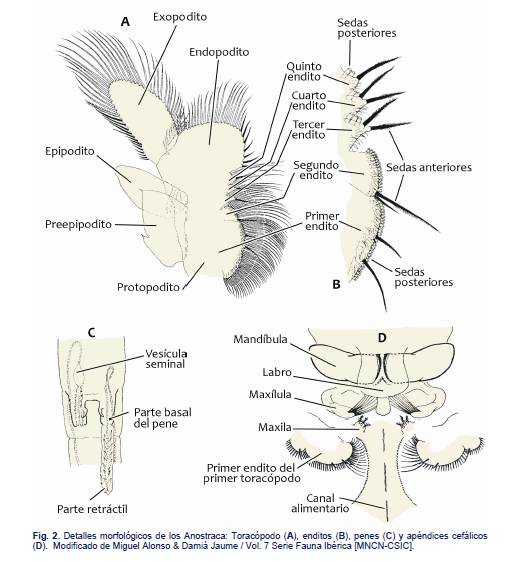 Ref: Adaptado de Alonso, M.1996. Crustacea, Branchiopoda. In Fauna Ibérica (eds, Ramos, M.A., Alba, J., Bellés, X., Gonsálbes, J., Guerra, A., Macpherson, E., Martin, F., Serrano, J. & Templado, J.), 7: 1-486. Museo Nacional de Ciencias Naturales-CSIC, Madrid.